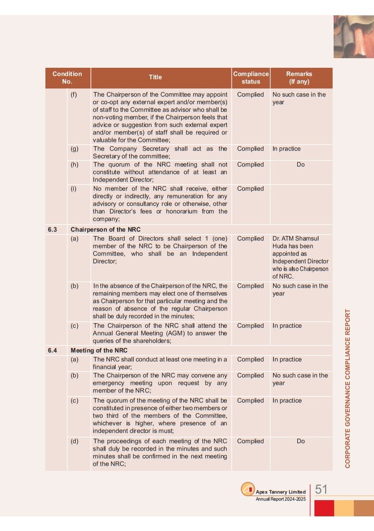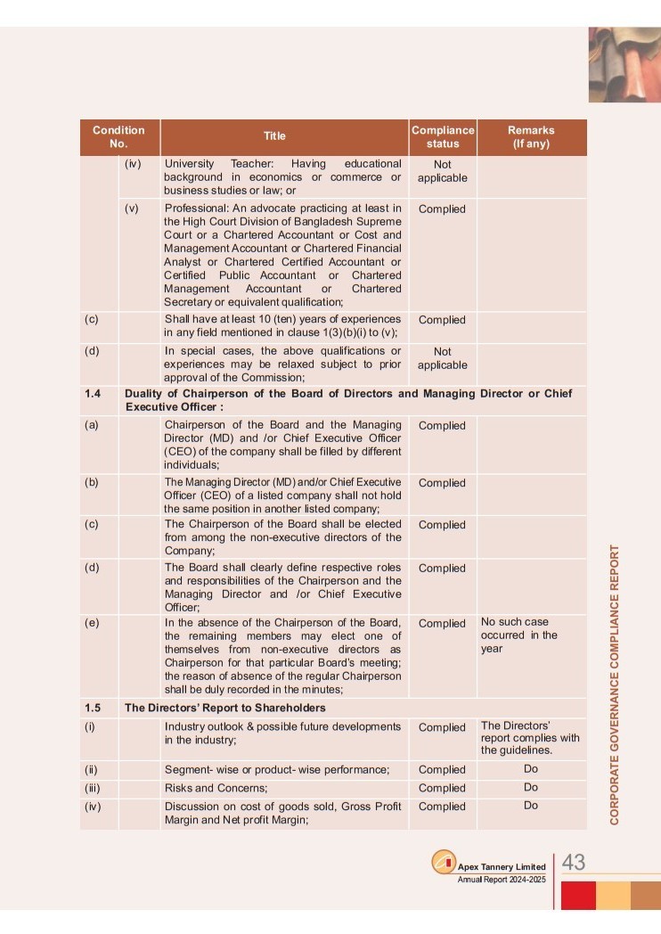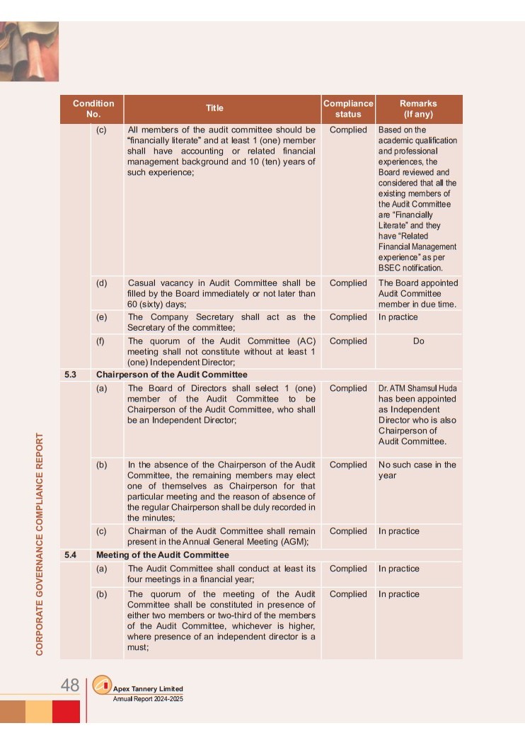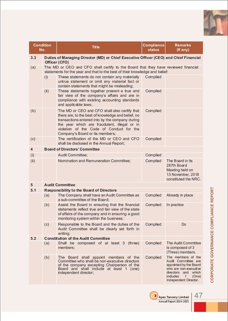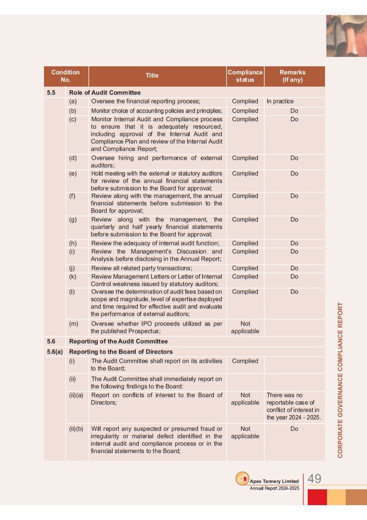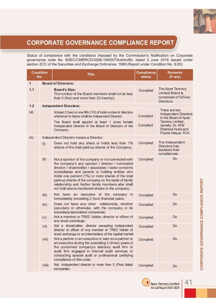 Corporate Governance Compliance Report