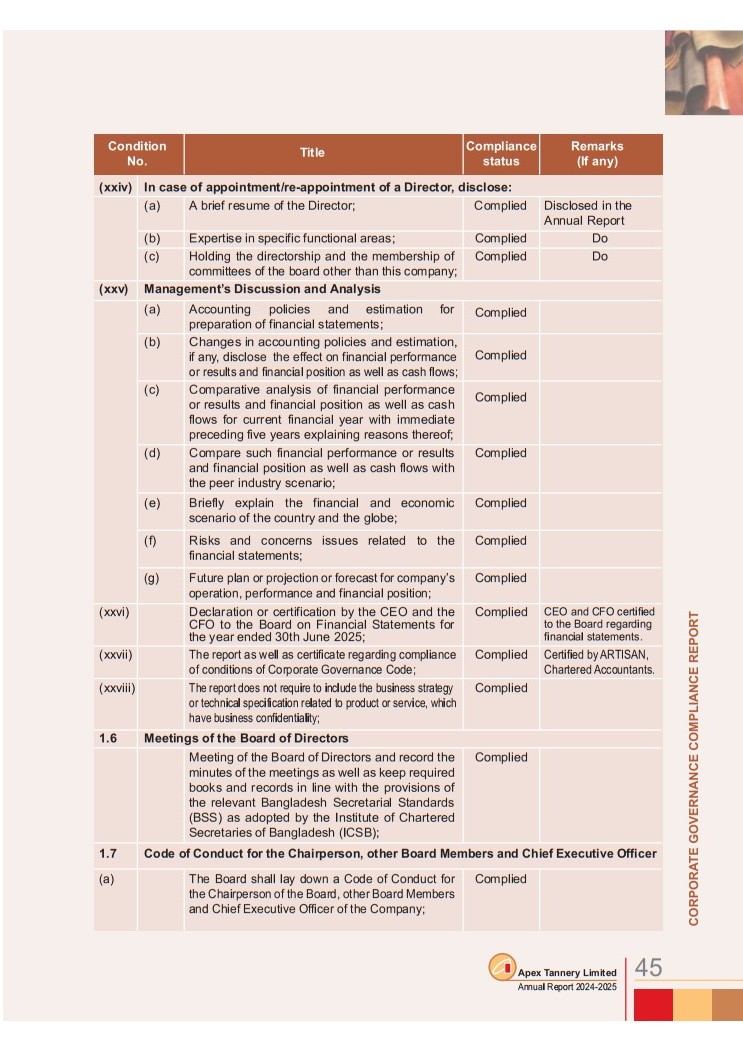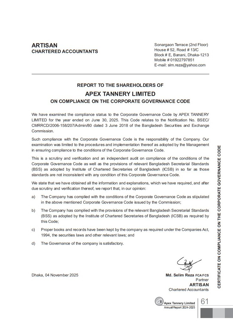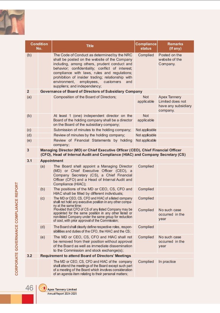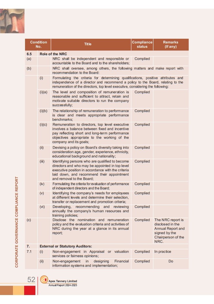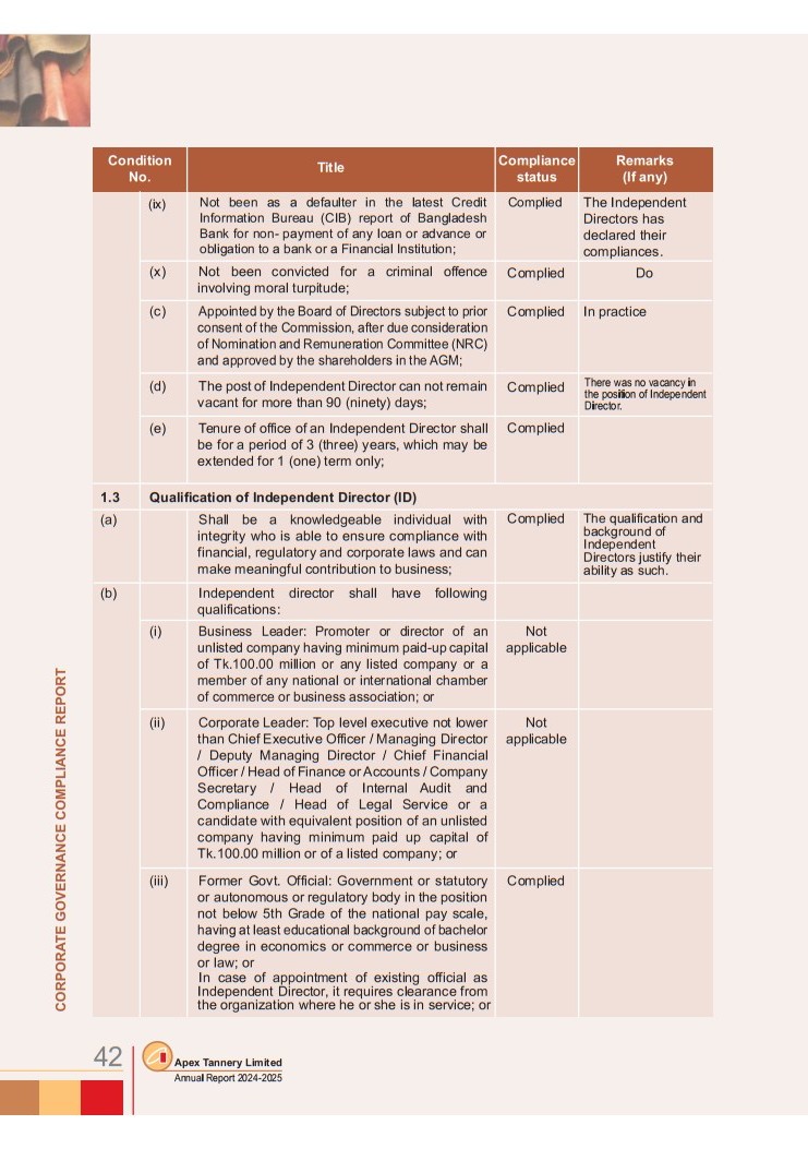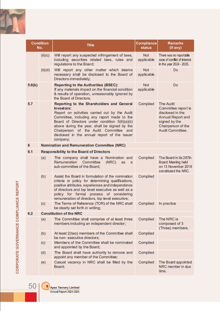 Corporate Governance Compliance Report